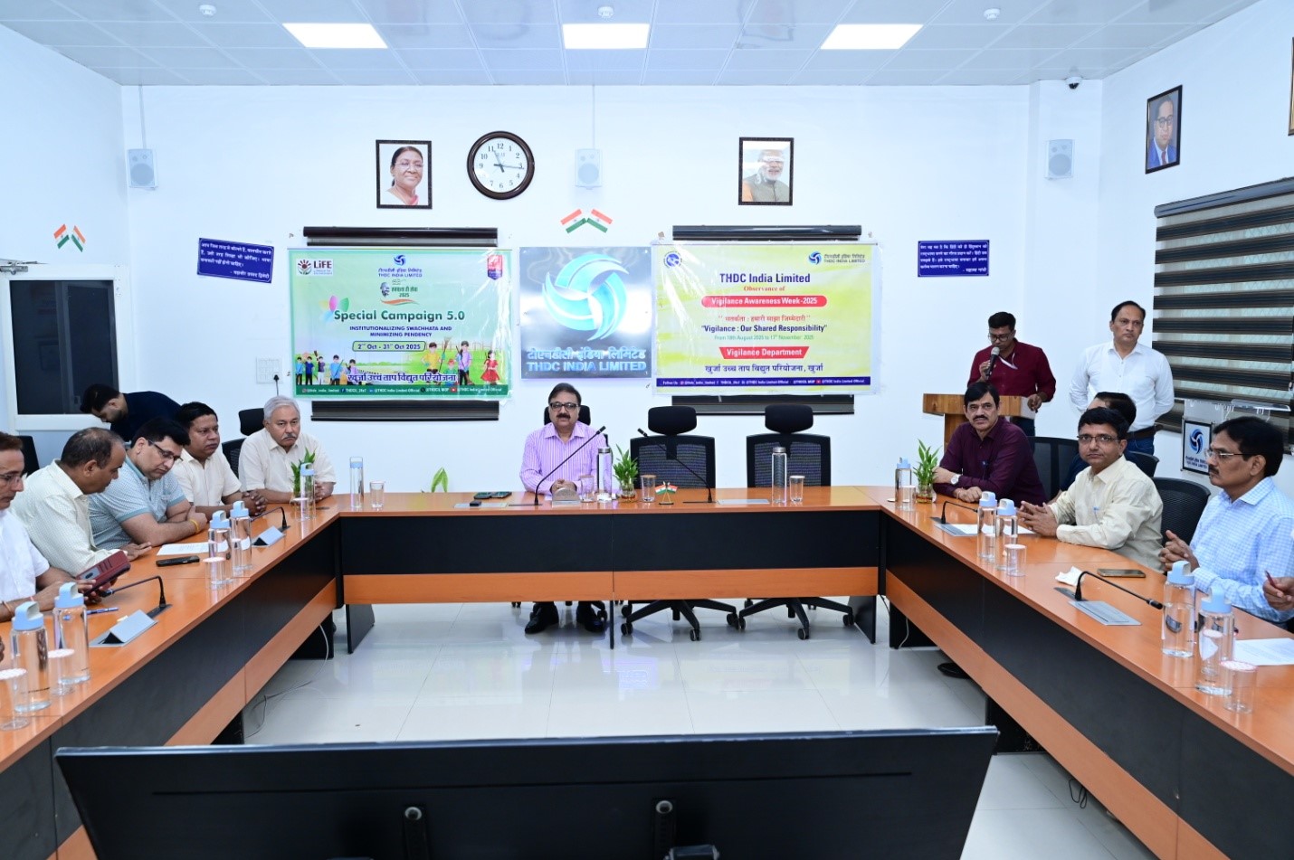 खुर्जा उच्च ताप विद्युत परियोजना में 27 अक्टूबर, 2025 को सतर्कता जागरूकता सप्ताह का शुभारंभ किया गया। इस अवसर पर परियोजना के कार्यपालक निदेशक, श्री कुमार शरद ने टीएचडीसी इंडिया लिमिटेड परिवार के समस्त अधिकारियों एवं कर्मचारियों को सत्यनिष्ठा की प्रतिज्ञा दिलाई तथा ईमानदारी, पारदर्शिता एवं निष्ठा को कार्य संस्कृति का अभिन्न अंग बनाए रखने का संदेश दिया। कार्यक्रम के दौरान श्री प्रभात कुमार (सहायक प्रबंधक, जनसंपर्क) ने सतर्कता जागरूकता सप्ताह की रूपरेखा प्रस्तुत करते हुए बताया कि 27 अक्टूबर से 3 नवम्बर 2025 तक परियोजना में विभिन्न जागरूकता कार्यक्रम एवं प्रतियोगिताएँ आयोजित की जाएगी, जिनमें क्विज़, निबंध लेखन, स्लोगन लेखन और पेंटिंग प्रतियोगिता प्रमुख हैं। इन गतिविधियों का उद्देश्य अधिकारियों एवं कर्मचारियों में सतर्कता, ईमानदारी और नैतिक मूल्यों के प्रति जागरूकता फैलाना है। अंत में कार्यपालक निदेशक (परियोजना), श्री कुमार शरद ने सभी अधिकारियों एवं कर्मचारियों से सतर्कता जागरूकता सप्ताह के दौरान आयोजित कार्यक्रमों में सक्रिय भागीदारी करने का आह्वान किया तथा संगठन में पारदर्शिता और उत्तरदायित्व की भावना को और सुदृढ़ करने पर बल दिया।