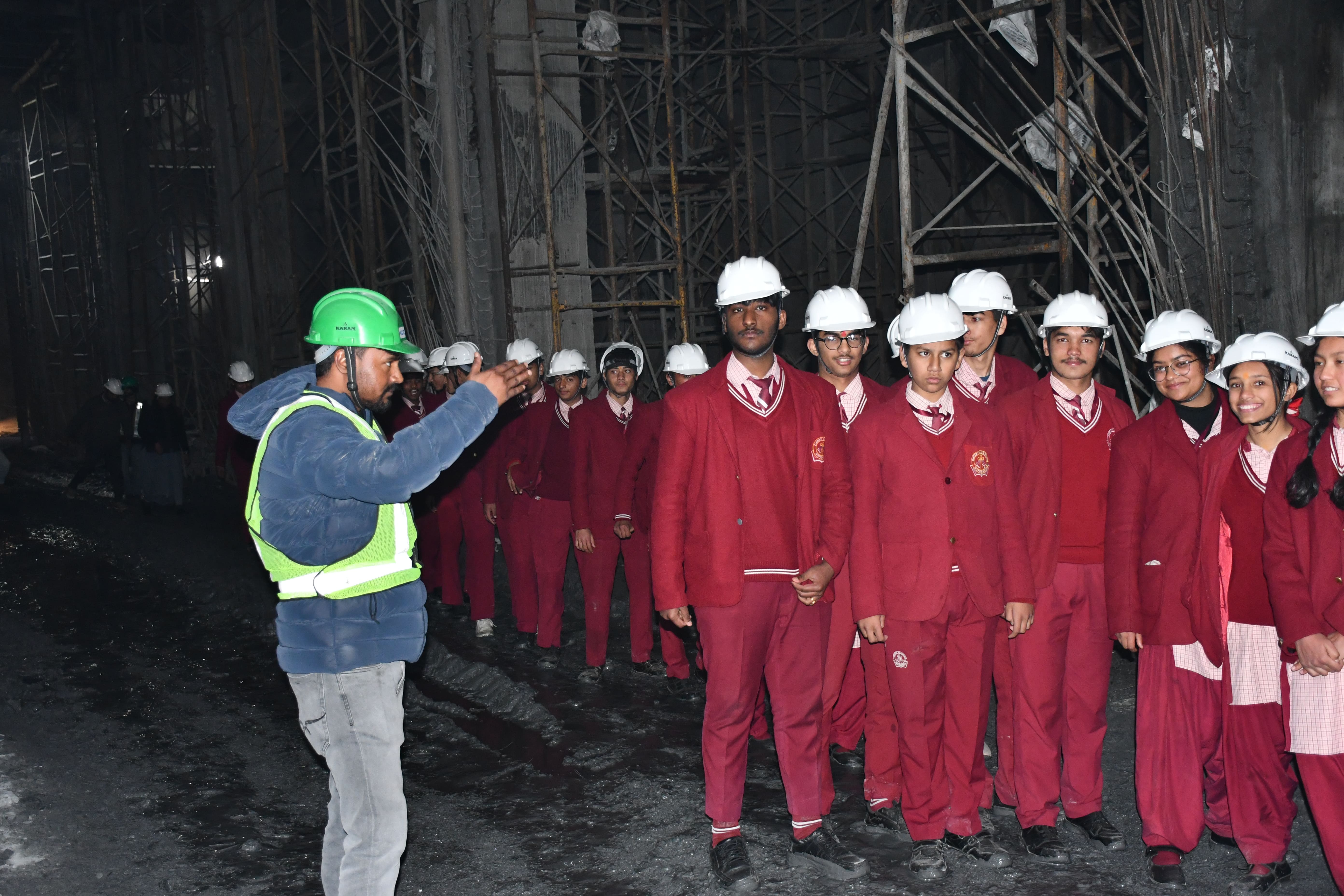 Facilitated by the officers of THDC India Limited and HCC, the visit was conducted while adhering to all safety norms and measures. The students explored key components of the VPHEP, including the powerhouse, transformer hall, and Tunnel Boring Machine (TBM) sites. They witnessed the ongoing TBM tunnel works and learned about advanced tunneling techniques, along with the benefits of utilizing TBM technology in large-scale infrastructure projects.