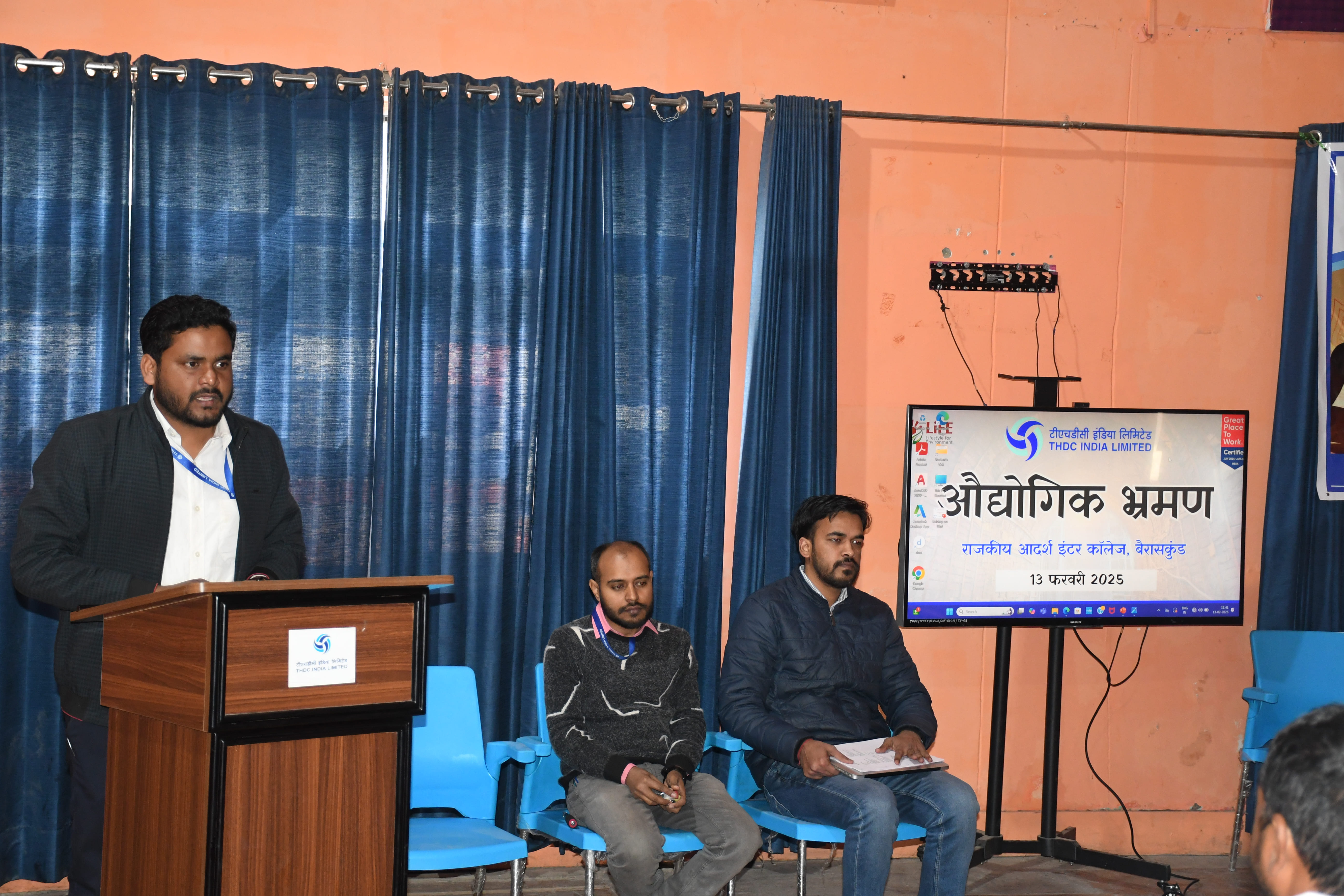 Sh. Avinash Kumar, Assistant Manager (PR) and Sh. Ahmed Reza, Asst. Manager (HR), welcomed the visiting students at the Alaknandapuram Campus of VPHEP. Sh. Avinash Kumar introduced them to the operations of THDC India Limited and the 444 MW Vishnugad-Pipalkoti Hydro Electric Project, emphasizing its role in sustainable energy generation and regional development.