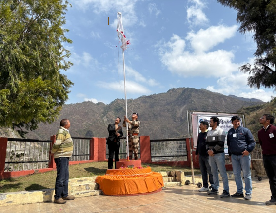 मुख्य अतिथि श्री एम० के० सिंह, मुख्य महाप्रबंधक (कोटेश्वर परियोजना) द्वारा सुरक्षा दिवस एवं सुरक्षा सप्ताह के अवसर पर सुरक्षा झंडे को फहराया गया।