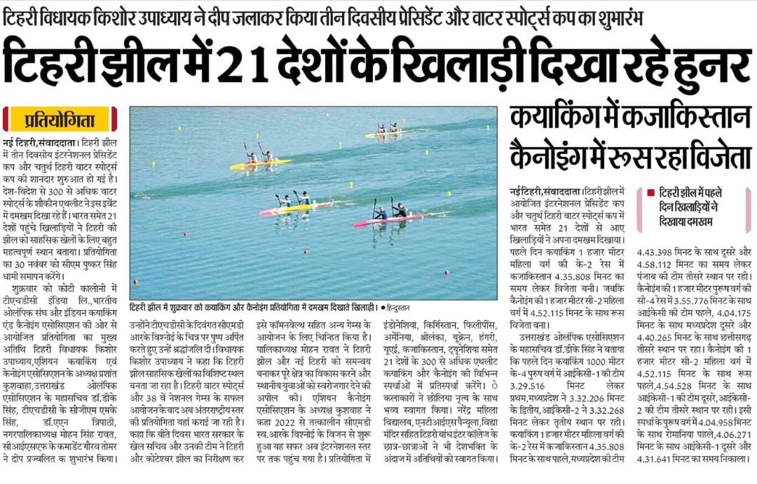 श्री किशोर उपाध्याय, माननीय विधायक, टिहरी ने इस बात पर प्रकाश डाला कि टिहरी वाटर स्पोर्ट्स कप जैसी पहल खेल संस्कृति को बढ़ावा देने, युवाओं की भागीदारी को प्रोत्साहित करने और पर्यटन को बढ़ावा देने में महत्वपूर्ण भूमिका निभाती है, जिससे राज्य के समग्र विकास में योगदान मिलता है।