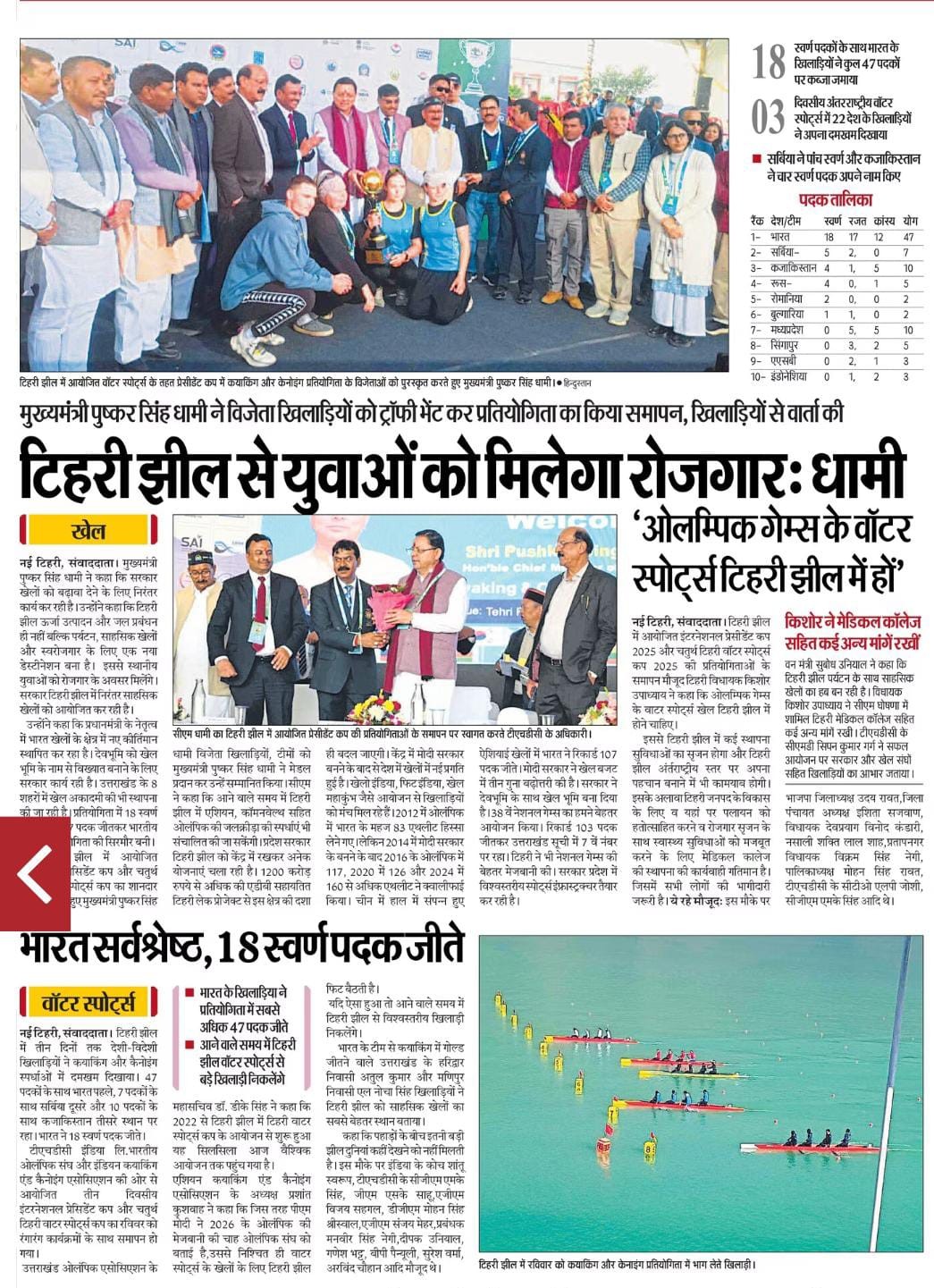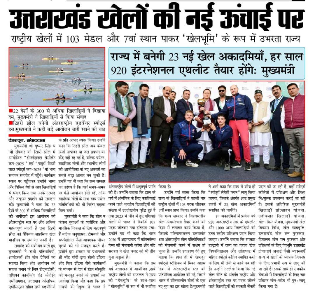 उपस्थित जनसमूह को संबोधित करते हुए, माननीय मुख्यमंत्री ने लगातार चौथे वर्ष इस अंतर्राष्ट्रीय खेल आयोजन की सफलतापूर्वक मेजबानी के लिए टीएचडीसी इंडिया लिमिटेड की सराहना की। 22 देशों के एथलीटों की भागीदारी ने यह सिद्ध किया कि उत्तराखंड तेज़ी से विश्वस्तरीय जल-क्रीड़ा के प्रमुख केंद्र के रूप में अपनी पहचान स्थापित कर रहा है।