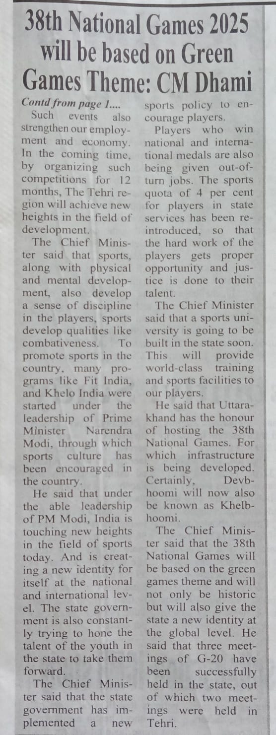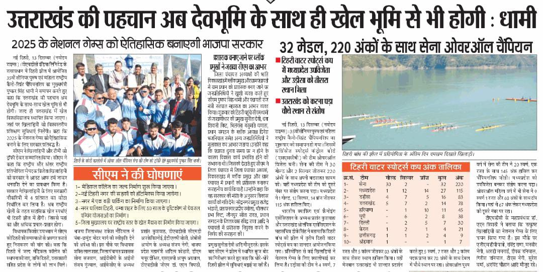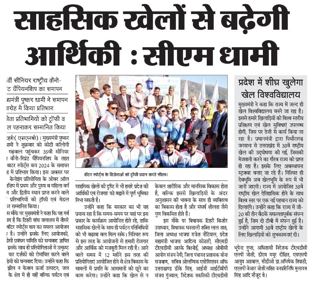 श्री विश्नोई ने कहा कि टीएचडीसी इंडिया लिमिटेड सदैव उत्तराखंड के सामाजिक-आर्थिक विकास के लिए प्रतिबद्ध रहा है तथा टिहरी वाटर स्पोर्ट्स जैसी पहल हमारी व्यावसायिकता और समर्पण का ज्वलंत उदाहरण है। निगम द्वारा कोटेश्वर में हाई परफ़ोर्मेंस अकादमी की स्थापना राज्य में पर्यटन और खेल के विकास का प्रमाण है, जो राष्ट्रीय और अंतर्राष्ट्रीय स्तर पर उत्कृष्टता प्राप्त करने के लिए प्रतिभाओं को तैयार करती है। उन्होंने उत्तराखंड सरकार के अमूल्य सहयोग की भी सराहना की, जिसने इन पहलों को शानदार सफलता में बदलने में महत्वपूर्ण भूमिका निभाई है।"