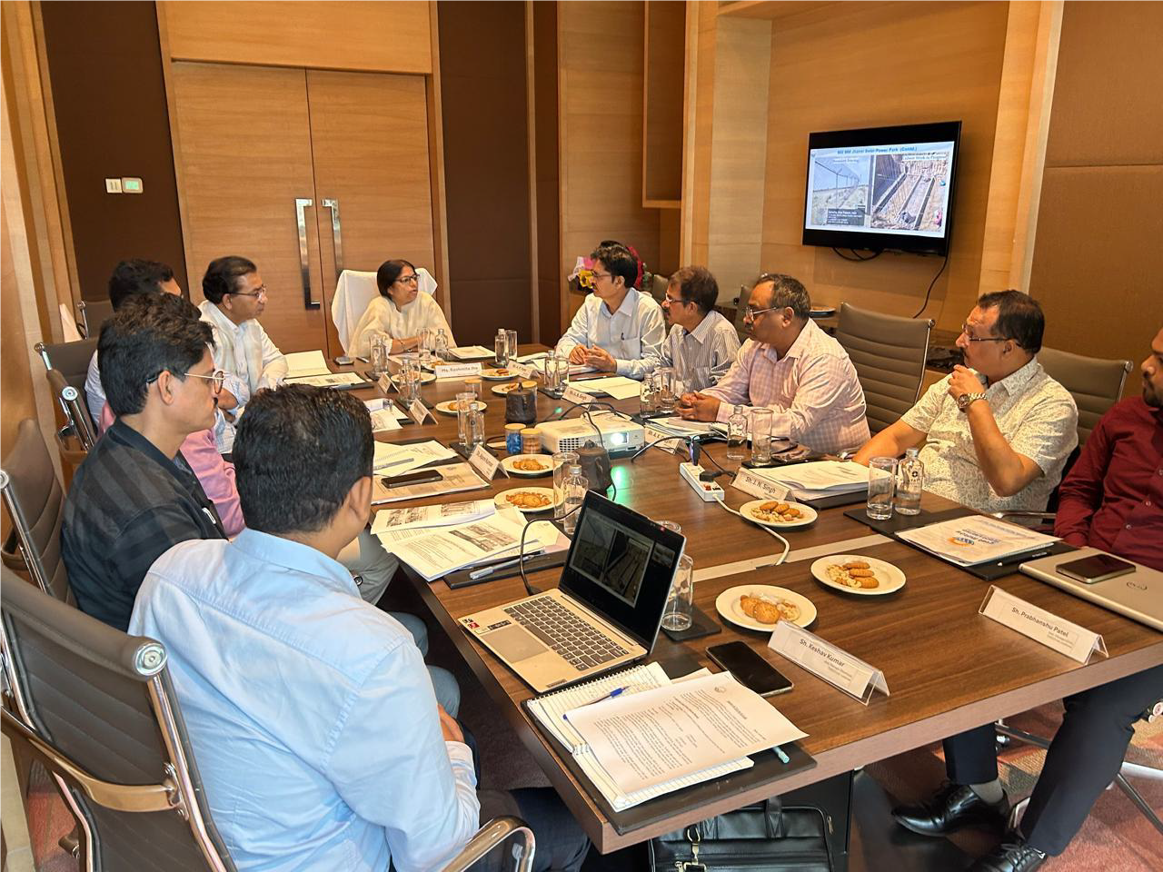 The presentation was given under the overall direction of Sh. Manoj Sardana, (CEO), TUSCO Ltd. The meeting was attended by all Heads of Departments (HODs) - Sh. A.P. Vyas, AGM (Solar), Sh. V.P. Mathur, AGM (Fin.), along with the three Project In-Charges - Sh. U.B. Singh, AGM (Solar), Jhansi, Sh. A.K. Duggal, AGM (Solar), Lalitpur and Sh. J.N. Singh, DGM (Solar), Chitrakoot Solar Projects. Sh. S.K. Arya, Dy. CVO, THDCIL and Sh. Apurv Kumar, Manager (Vigilance) also attended the meeting.