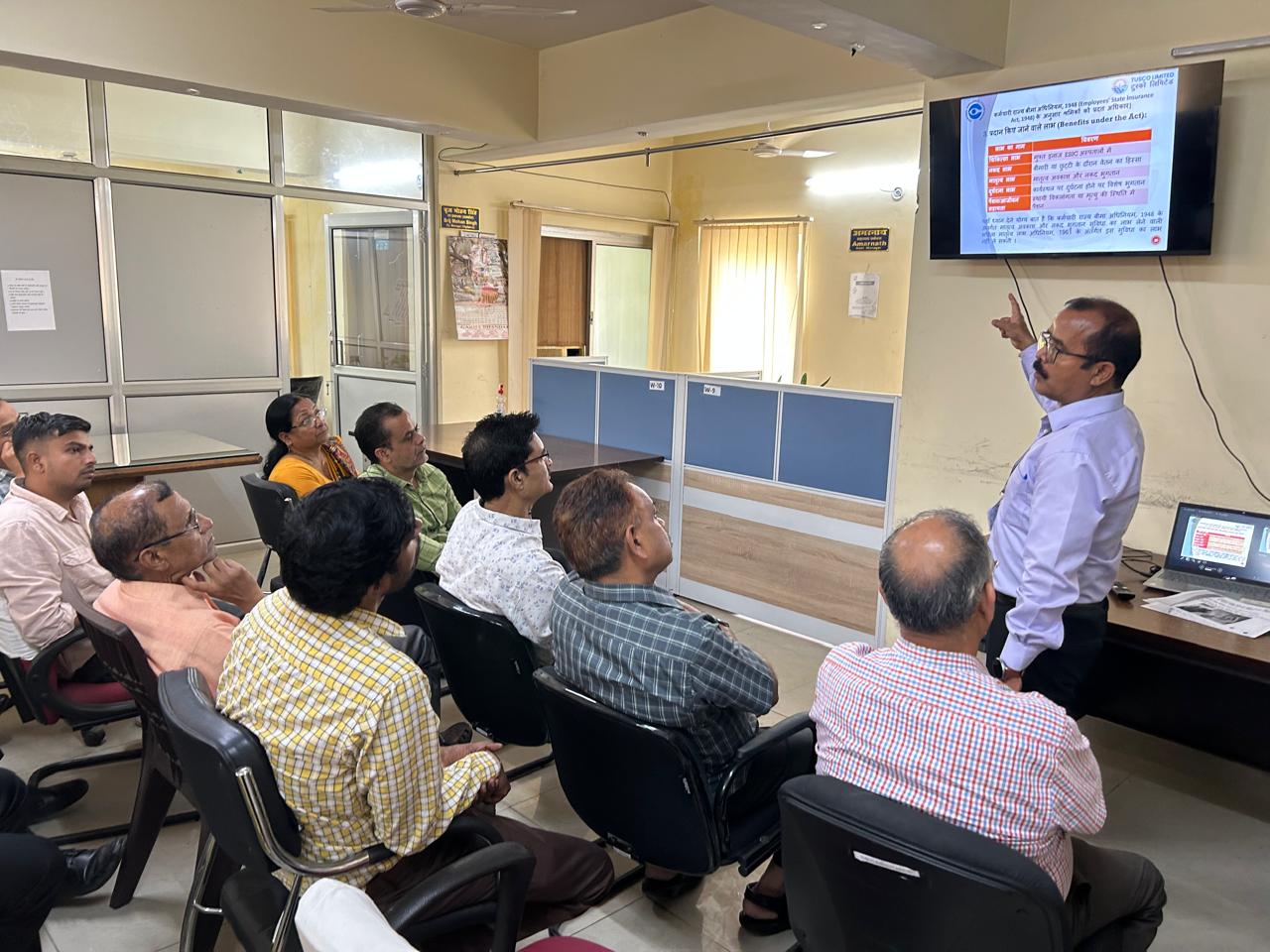 01 मई, 2025 को टुस्को लिमिटेड, लखनऊ कार्यालय में “अंतर्राष्ट्रीय मजदूर दिवस” के अवसर पर सतर्कता विभाग द्वारा एक कार्यक्रम का आयोजन किया गया l कार्यक्रम में श्री डी. पी. गैरोला, उप महाप्रबंधक (सतर्कता) के द्वारा “श्रमिकों के अधिकार” विषय पर एक प्रस्तुति दी गयी, जिसके माध्यम से कार्यक्रम में उपस्थित श्रमिकों को उनके अधिकारों के प्रति जागरूक किया गया l साथ ही कार्यक्रम में उपस्थित समस्त अधिकारियों को श्रमिक अधिकारों के प्रति संवेदनशील रहने के लिए प्रेरित किया गया l कार्यक्रम के दौरान सर्व श्री ए. पी. व्यास, अपर महाप्रबंधक, श्री सी.पी. रतूड़ी, वरिष्ठ प्रबंधक, श्री शशांक लाल, वरिष्ठ प्रबंधक, श्री बृज मोहन सिंह, उप प्रबंधक इत्यादि उपस्थित रहे l कार्यक्रम के समापन पर उप महाप्रबंधक (सतर्कता) द्वारा सभी उपस्थित अधिकारियों एवं श्रमिकों को कार्यक्रम में सम्मिलित होने के लिए आभार प्रकट किया l