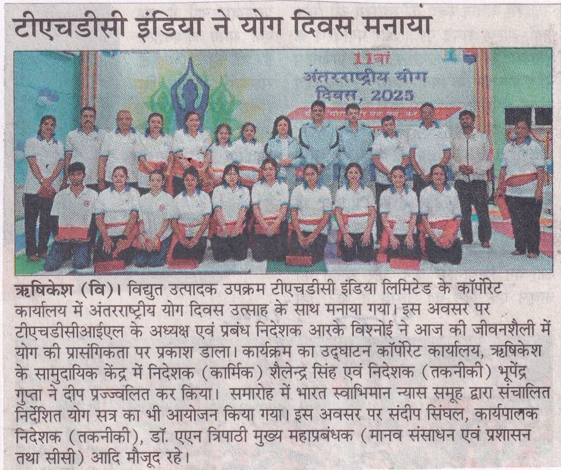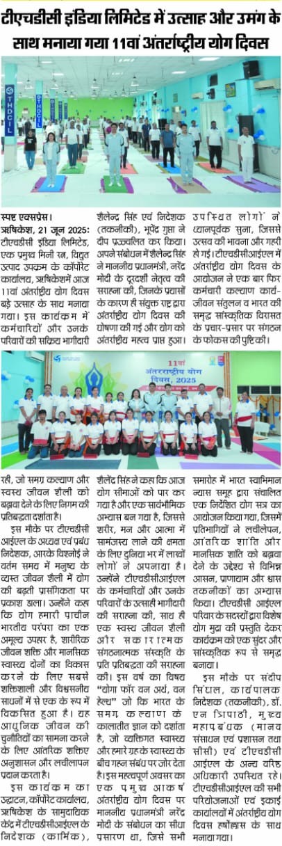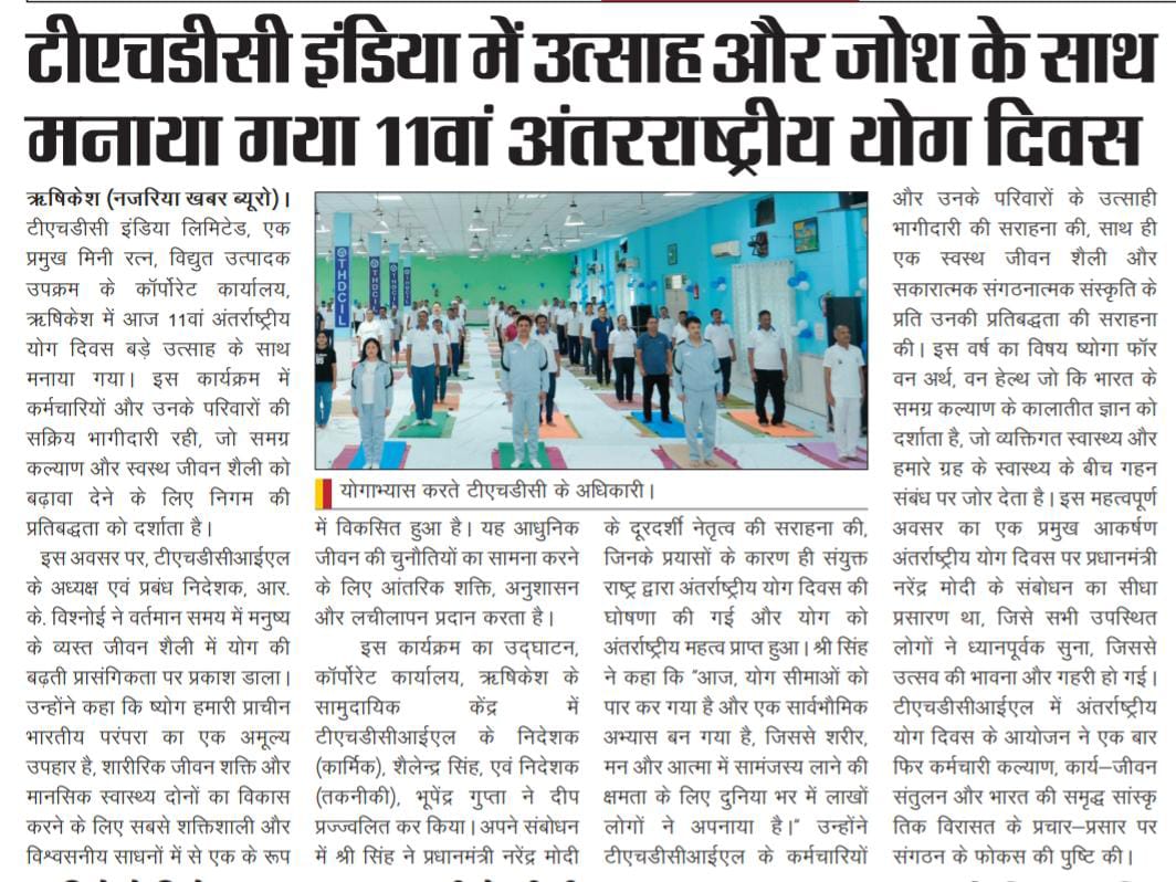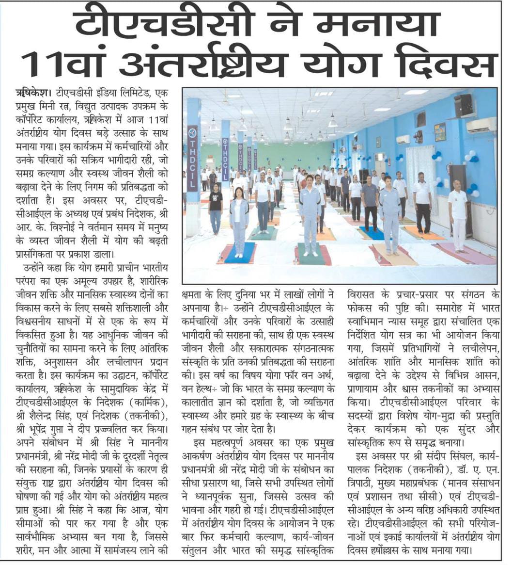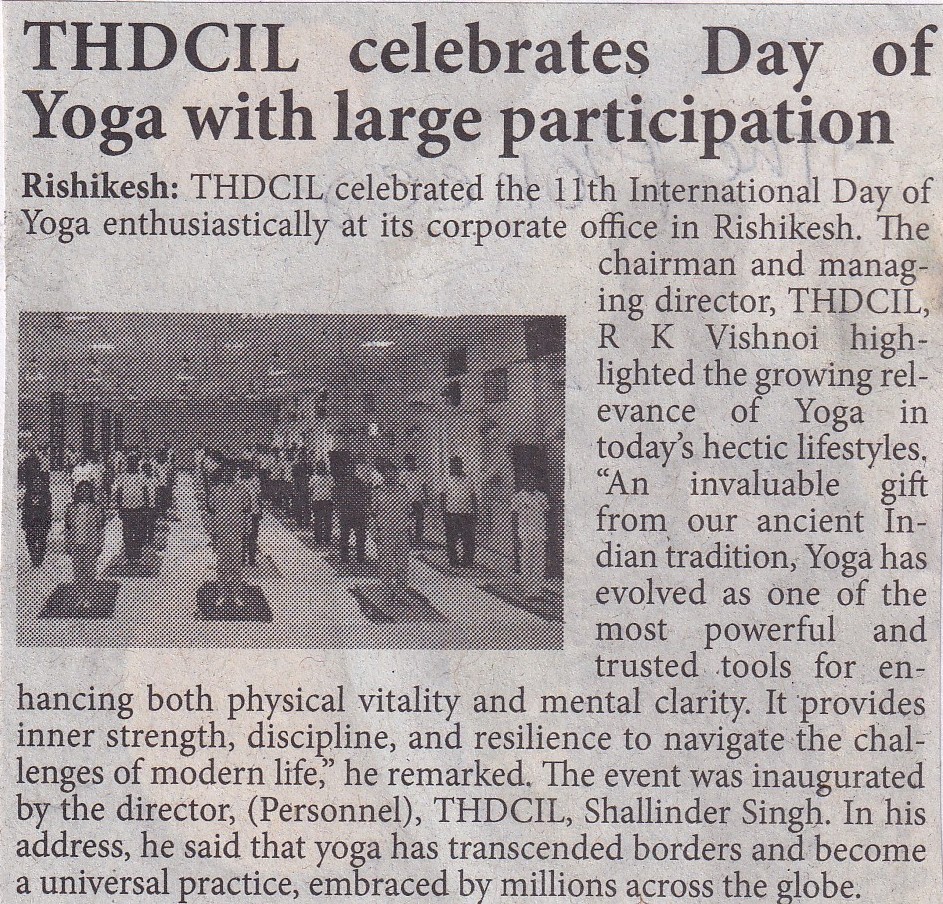 The celebration of International Yoga Day at THDCIL once again reaffirmed the organization’s focus on employee welfare, work-life balance, and the promotion of India’s rich cultural heritage.