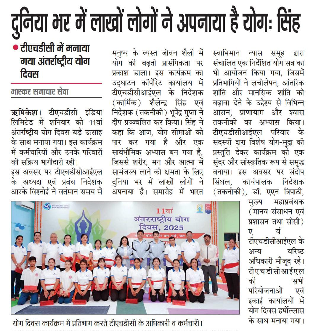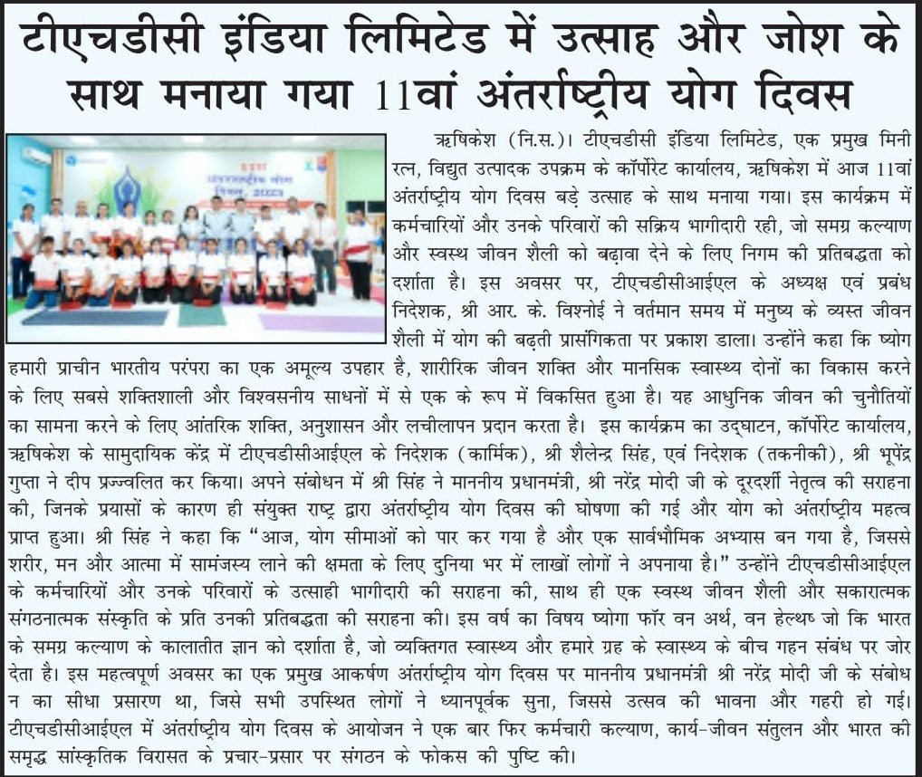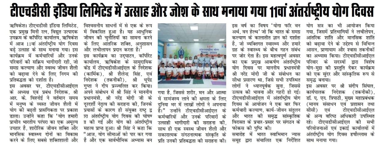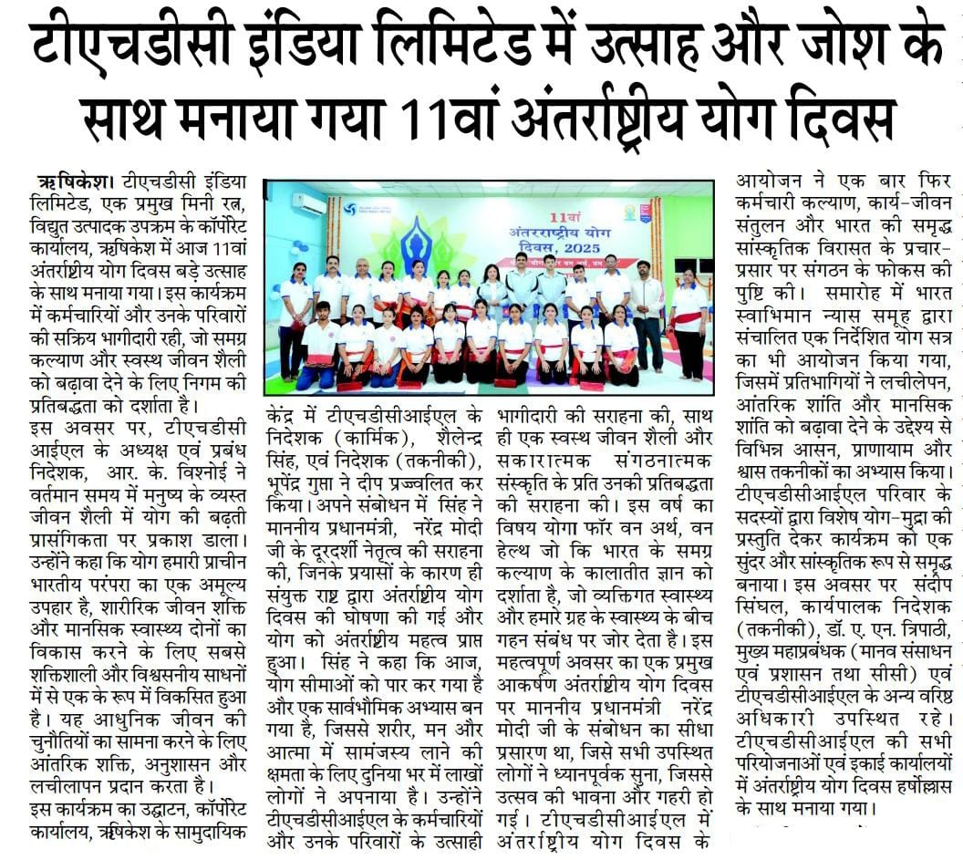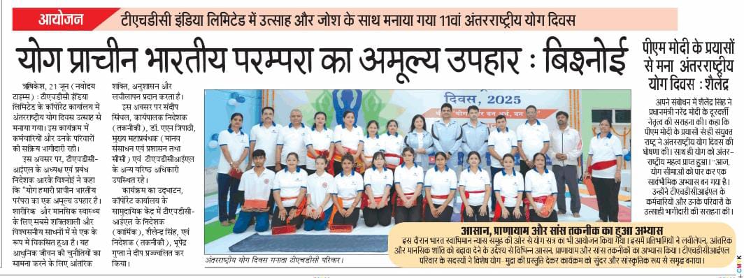 The celebration of International Yoga Day at THDCIL once again reaffirmed the organization’s focus on employee welfare, work-life balance, and the promotion of India’s rich cultural heritage.
