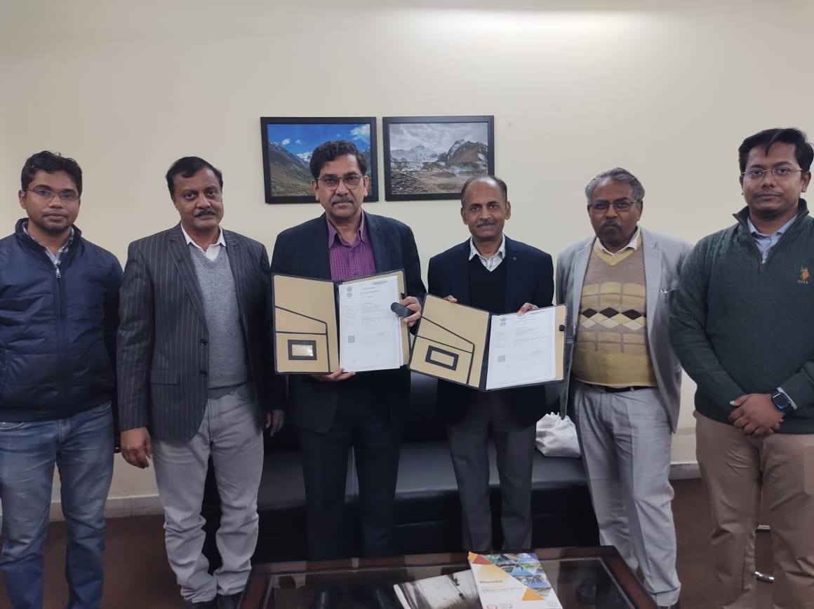 The MoU was signed by Sh. Sandeep Singhal, ED (Technical), THDCIL, and Sh. Deepak Kumar Sharma, Chief Engineer & RO, MoRTH Dehradun. Dr. Niraj Kumar Agrawal, General Manager, and Sh. Amit Shyam Gupta, Manager (D&E) from THDCIL, along with Sh. Puran Singh, Superintending Engineer, and Sh. Sumit Rupam Sourav, Executive Engineer, MoRTH Dehradun were also present during the occasion.