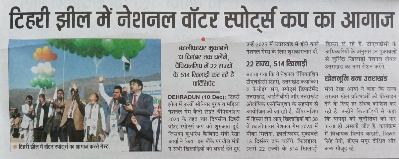 The championship has brought together over 500 athletes, coaches, and team managers from 22 states and various services across the country. This four-day event also serves as the qualifying championship for the National Games 2024. Organized by THDC India Limited in association with the Indian Kayaking and Canoeing Association (IKCA), the Uttarakhand Olympic Association, and the Uttarakhand Kayaking and Canoeing Association, the event highlights the collective efforts of multiple stakeholders dedicated to promoting sports excellence and adventure sports in the region.