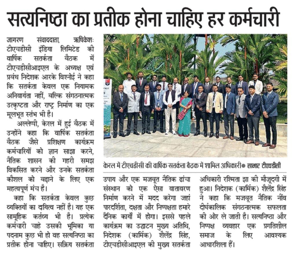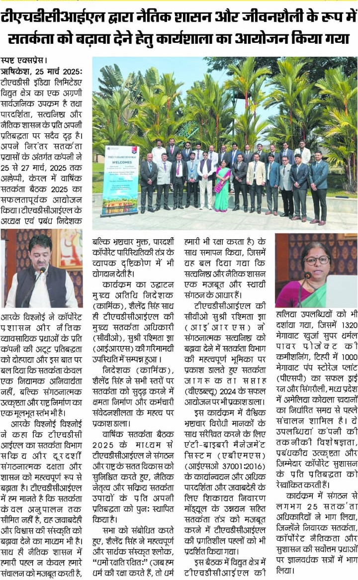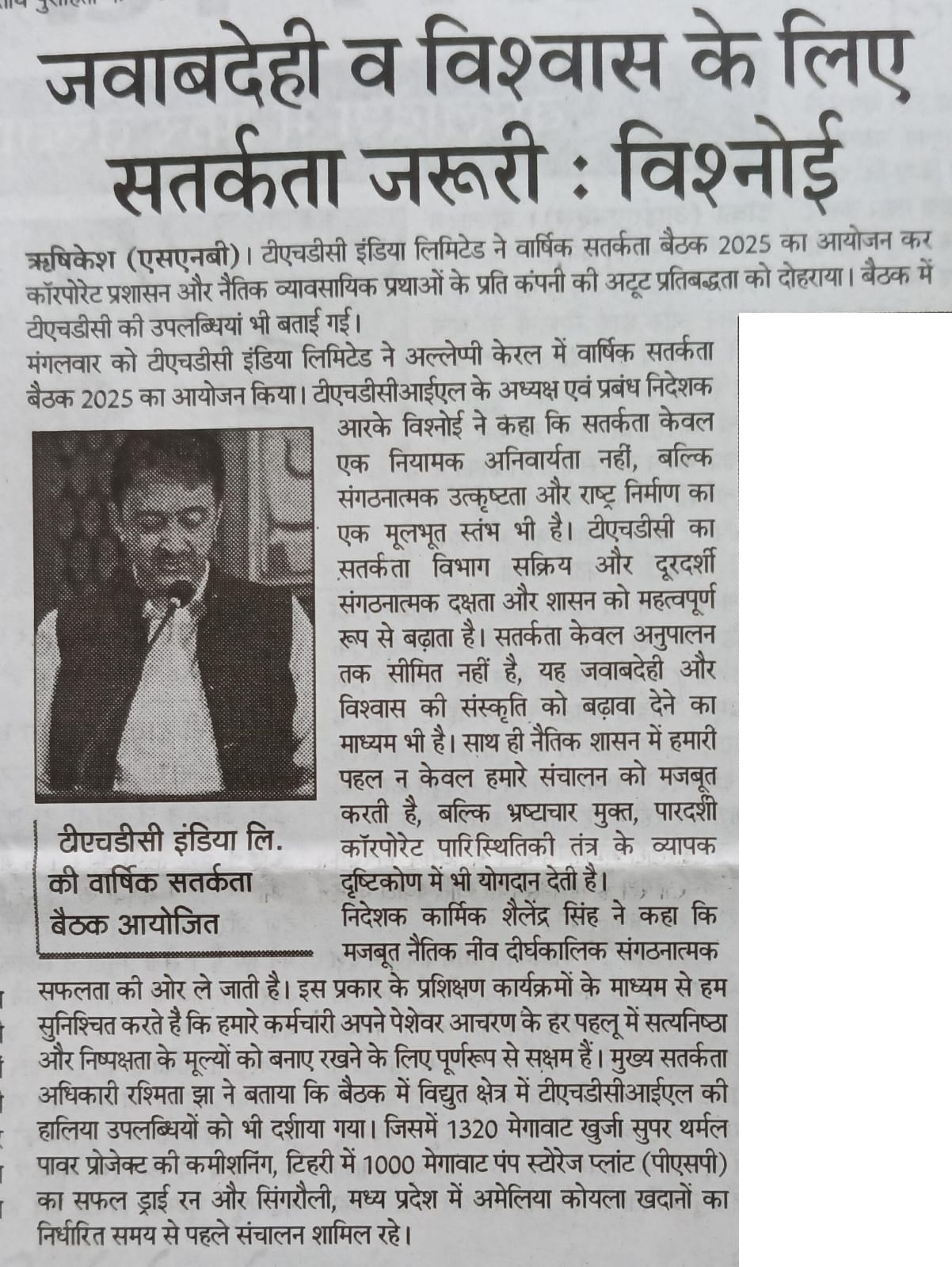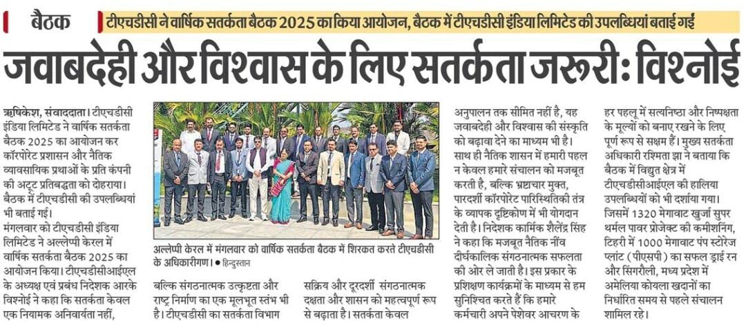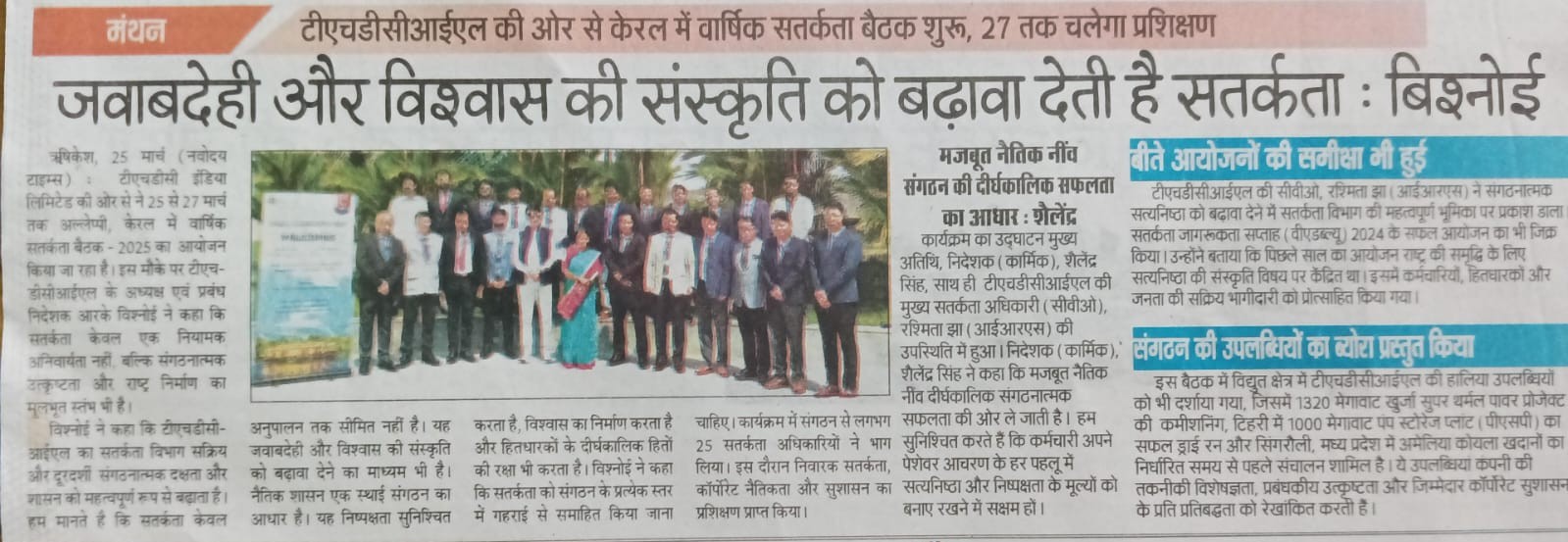 Sh. Vishnoi further emphasized that vigilance must be embedded into every layer of the organization. "Vigilance is not merely the responsibility of a few; it is a collective duty. Every employee, irrespective of role or designation, must be a torchbearer of integrity. Proactive vigilance measures and a strong ethical framework will help us maintain an environment where transparency, efficiency, and fairness are ingrained in our daily operations. Our commitment to these values will not only drive THDCIL towards excellence but also inspire the entire sector to operate with the highest ethical standards."