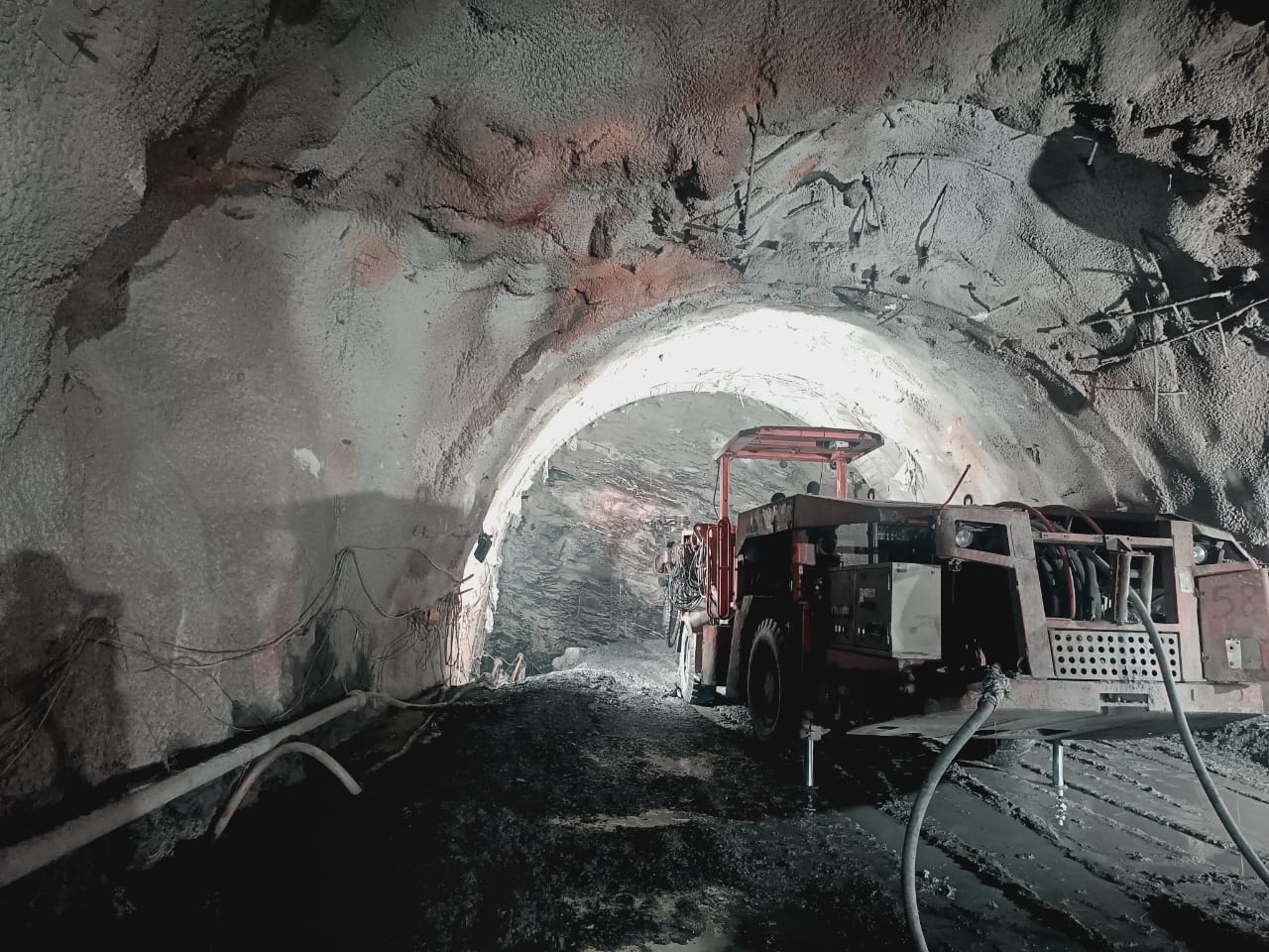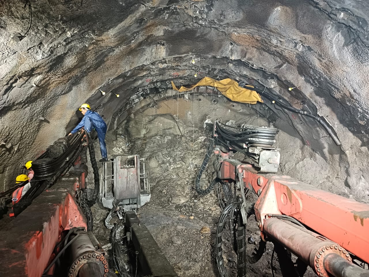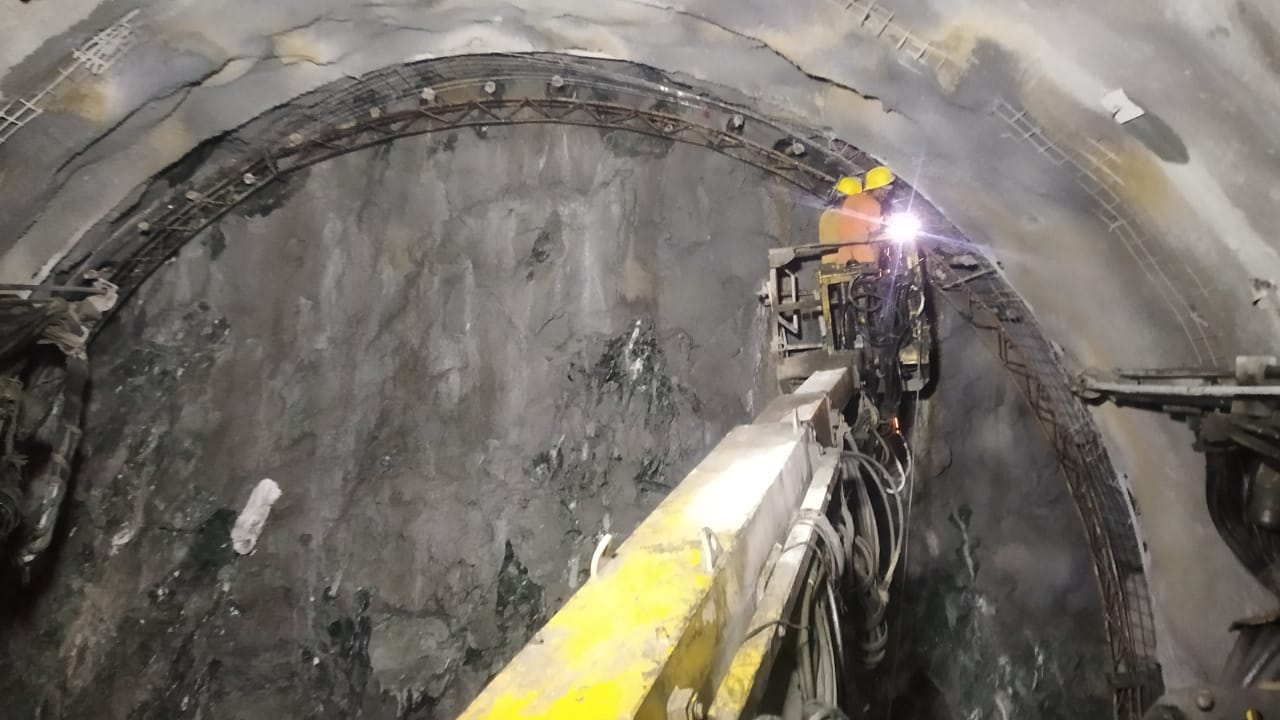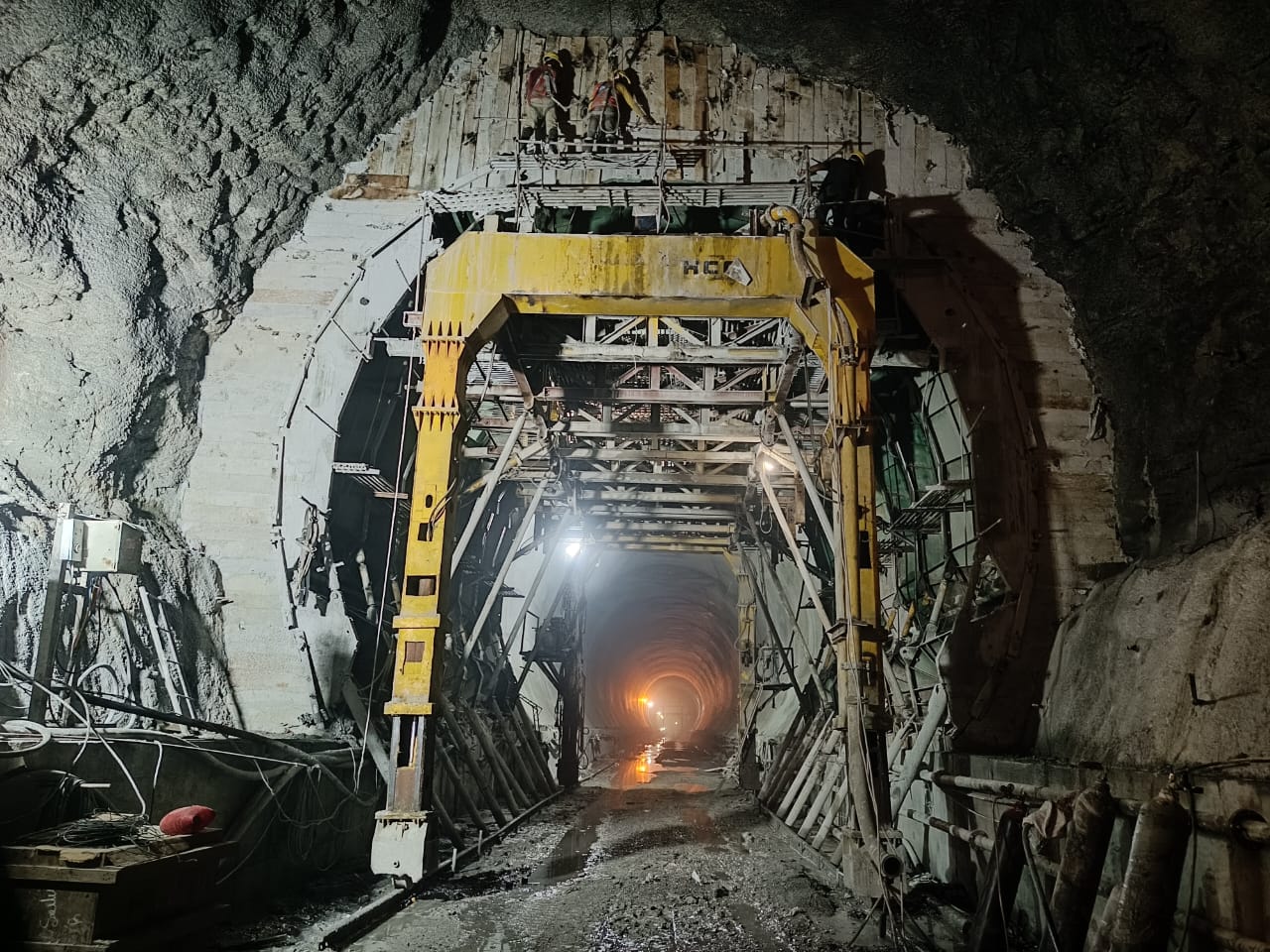 HRT Heading excavation (moving further with steel ribs support and backfill concrete) in progress