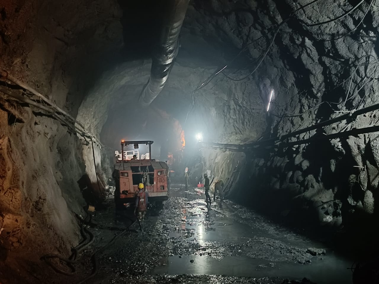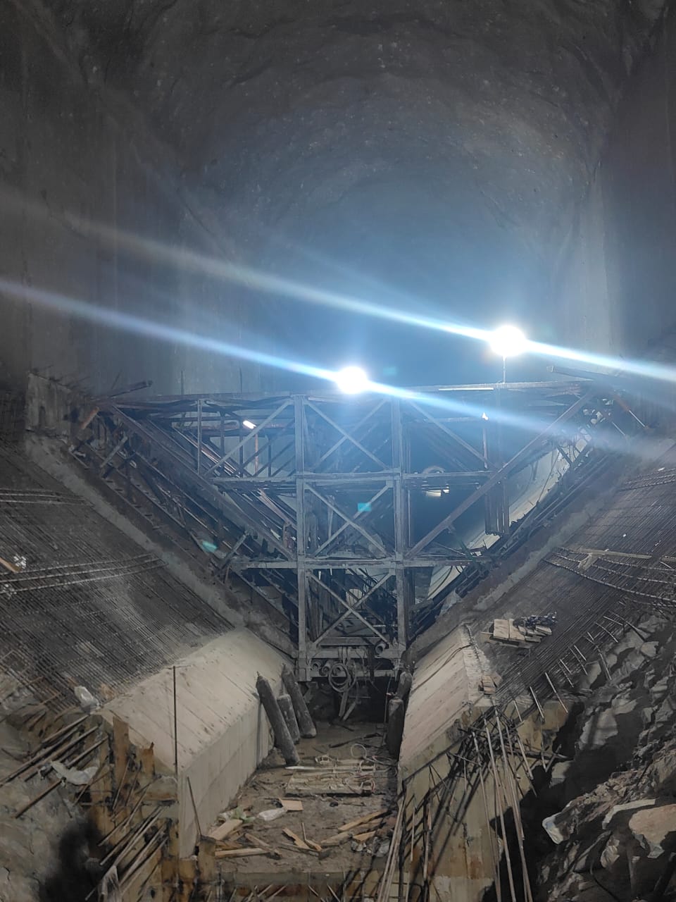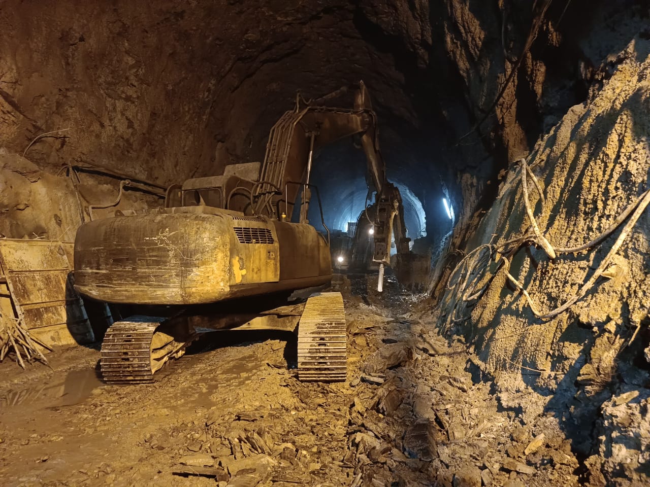HRT Heading excavation (moving further with steel ribs support and backfill concrete) in progress